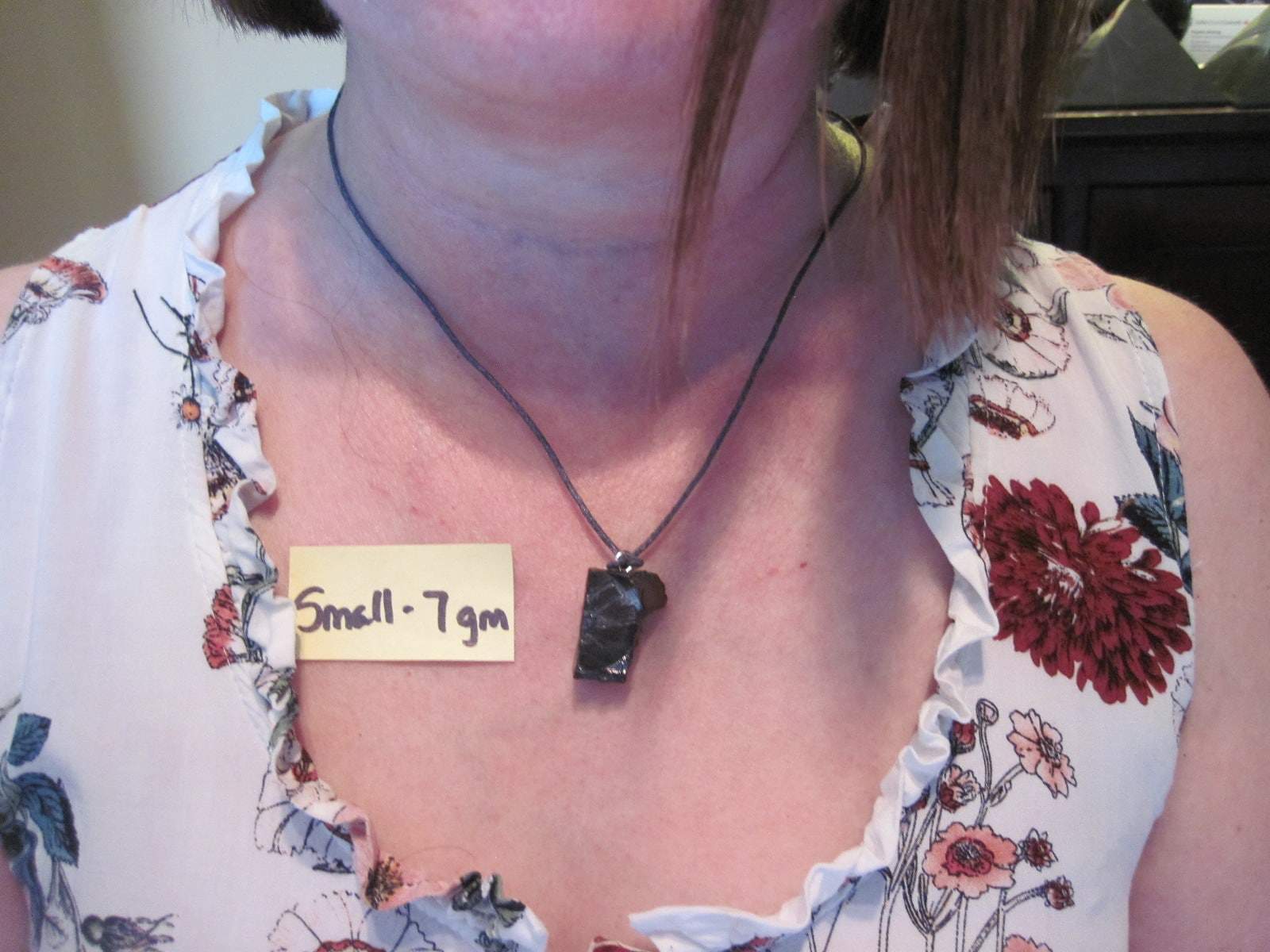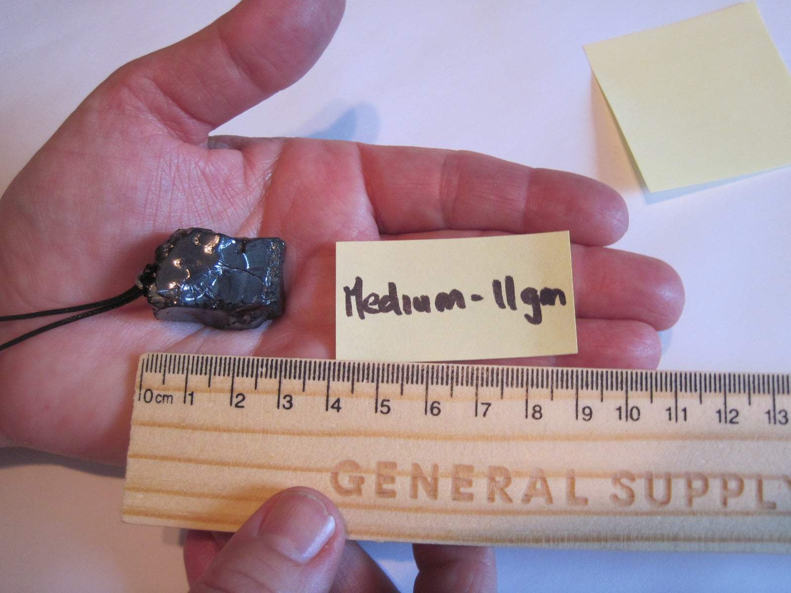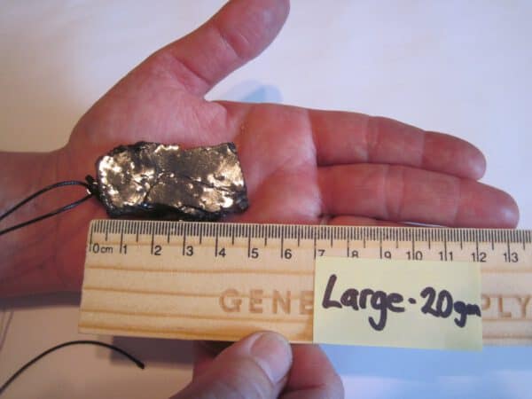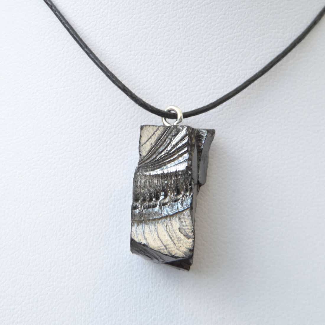 Elite Shungite pendants are created from their unique natural shape. It has deep grey color with shiny silvery surface. This Type I shungite is also called 'Noble' shungite and is almost pure unique C60 carbon ~99%.
