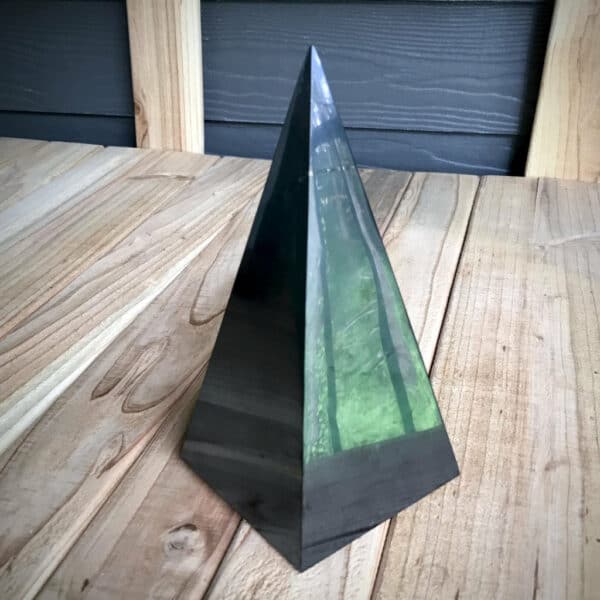 Beyond the description of the regular Shungite pyramids, the TALL pyramids are said to have a much greater 'torsion' field increasing their protection and healing qualities. These TALL pyramids, especially the Octahedral pyramids are much less common than regular pyramids and are sought as collector items due to their unique shape and qualities.